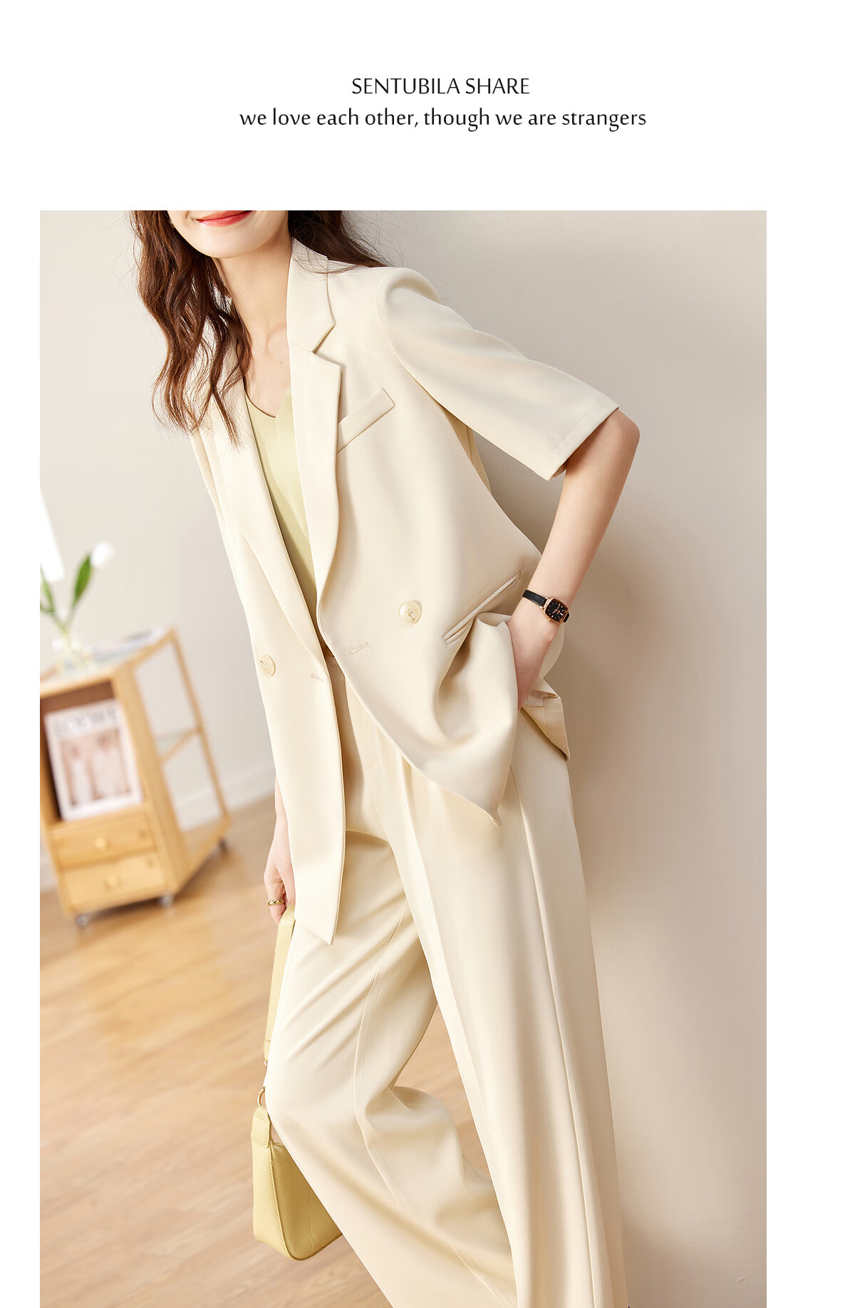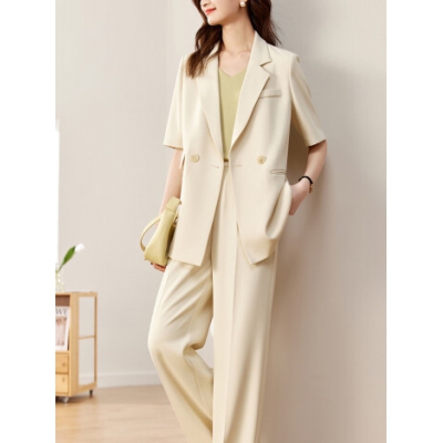 商品名称:尚都比拉减龄时尚职业套装女西装直筒休闲长裤两件套女装 杏色 S