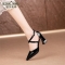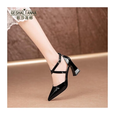 商品名称:歌莎莲娜上班凉鞋女防滑2023夏季新款真皮包头侧空高跟鞋女尖头扣带凉皮鞋 黑色 35