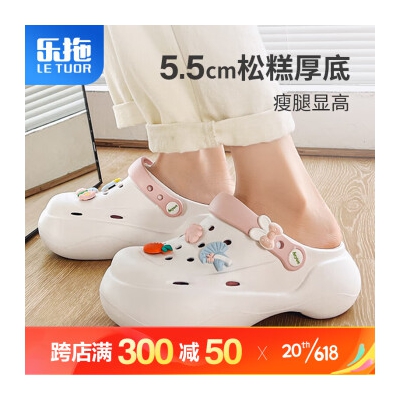 商品名称:乐拖【甜莓果茶】洞洞鞋女夏凉鞋拖鞋配饰户外沙滩厚底松糕白色35/36