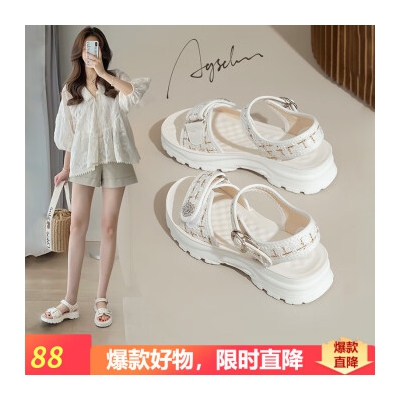 商品名称:奥古狮登凉鞋女2023新款夏季百搭小香风沙滩鞋女时尚增高魔术贴露趾鞋子女 332009米色 38/240