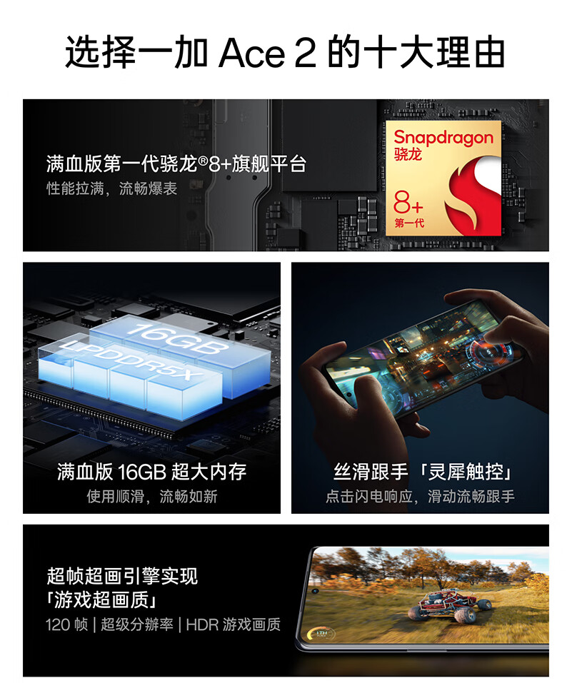 商品名称:OPPO 一加 Ace 2 16GB+256GB 冰河蓝 满血版骁龙®8+旗舰平台 1.5K灵犀触控屏 超帧超画引擎 5G游戏电竞手机